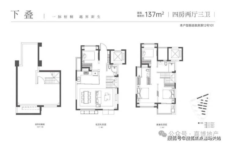 户型解析:建面约137㎡下叠,四房两厅三卫全能格局,非常适合二娃家庭以及三代同堂。 下叠附带全功能的地下室,可以打造成百变储藏室、茶室、会客厅、多功能影厅等。