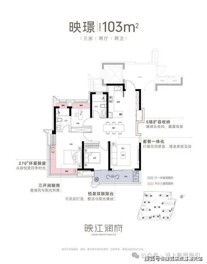 华润映江润府售楼处电话4008569058☑️☑️亮点五:双联阳台+多飘窗赠送、灵动空间。映江润府103户型,实现了100平级别难得的双联阳台,实现了室内空间的横向延伸,同时,搭配主卧、主卫、书房的“全飘窗”设计,赋予了空间更多灵动的使用场景。华润映江润府售楼处电话4008569058☑️☑️