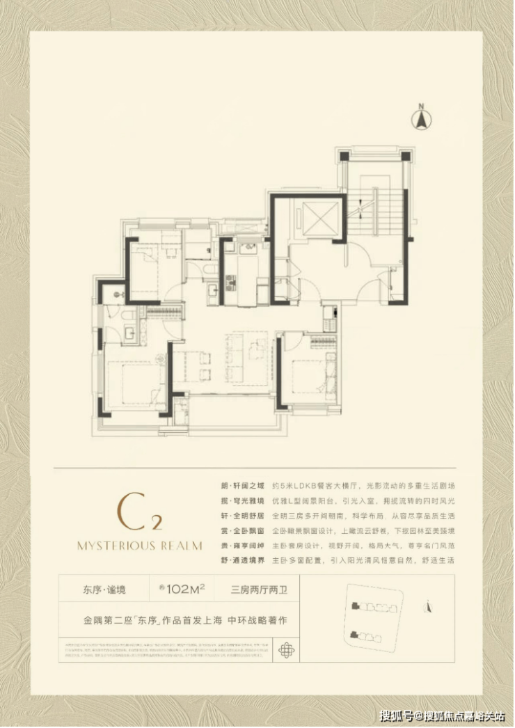 产品之一是建面约 102平3房 , 3.5开间朝南 , 同面积段产品中 罕见!拥有约5米面宽的LDKB超大横厅! 奢阔尺度远超同级别产品!