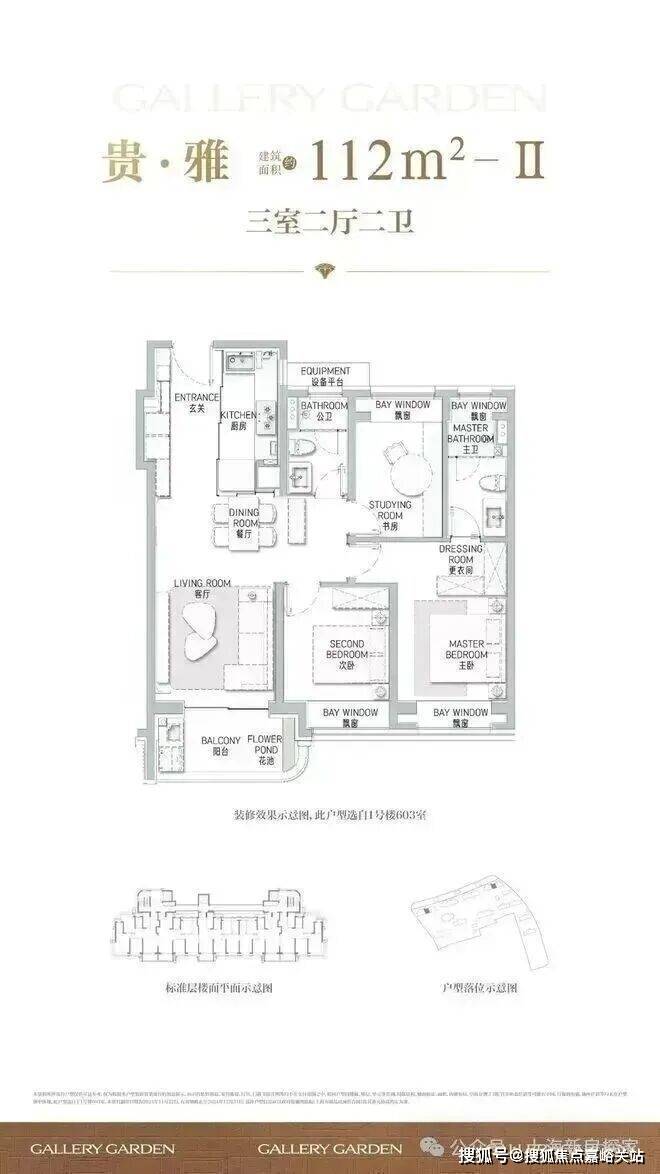 项目舍弃了传统逼仄的百平三房,将最小面积提升到了建面约112㎡,而这12个平方的提升,让整体户型的空间尺度感达到了新的高度。