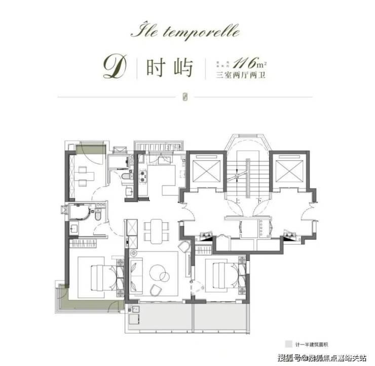 约116㎡户型南向双阳台藏着小心机,中间为非承重墙。