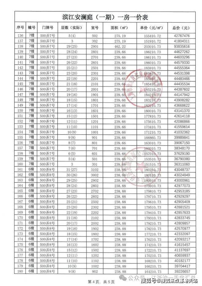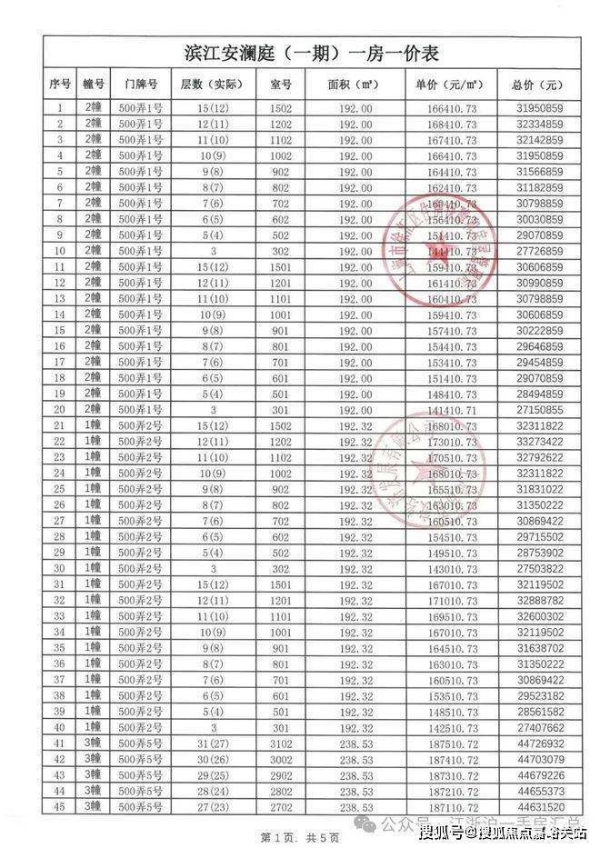 一房一价表