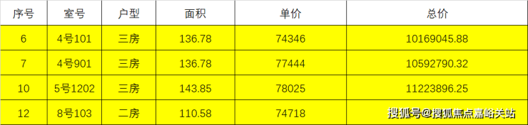 4套在售房源如下表: