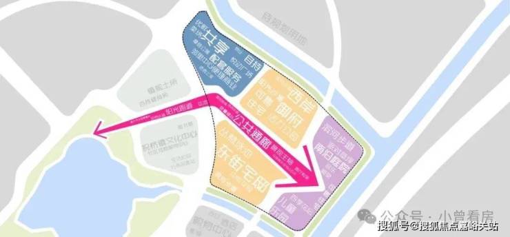 据悉社区由自持住宅、可售住宅、社区配套三大功能组合而成,北区为公区自持配套区,中区为住宅社区,南区为住宅社区及配套。