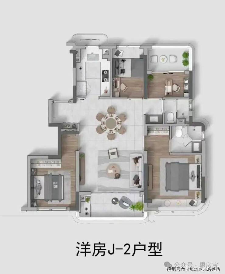 三层为 方厅格局 与 南向老人房 ,外加 独立入户空间露台 ,即使与长辈同住,也能通过垂直分层实现完美的动静分离与互不干扰。