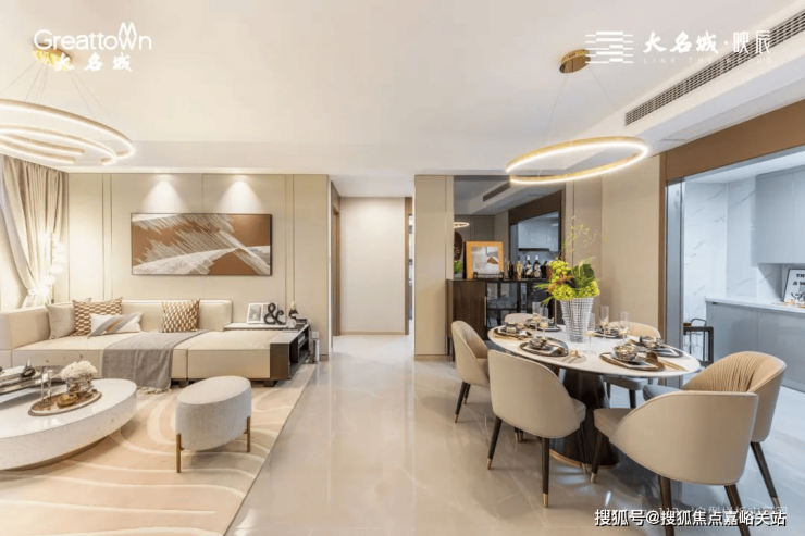餐客厅同宽设计,让动区的空间感更为阔绰,小三房甚至能够摆放六人桌,家庭派对式餐厅,就是大名城映辰献给客户的知心诚意。