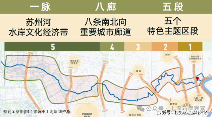 『岁月里市,烟火新生』,苏河湾商业新名片:以苏河湾地区全新商业名片为规划定位,在海派优秀历史建筑集群之间,规划打造高端零售、高档餐饮、文化展览等格调商业,代言「上海历史文化生活新地标」。