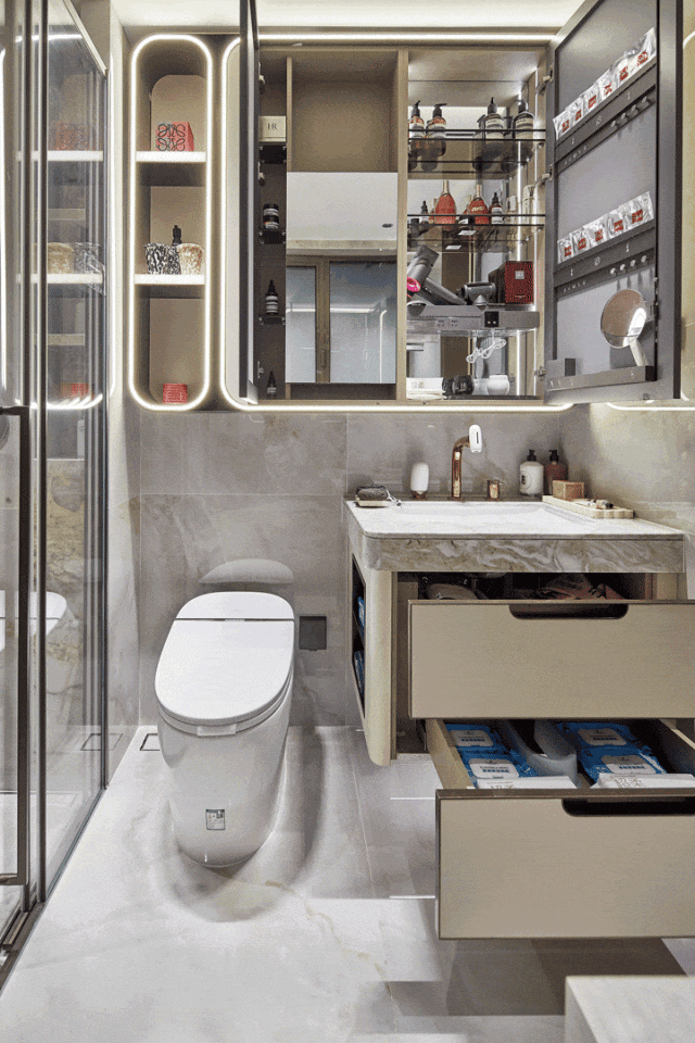项目归家门庭采用石材, 叠加铝板元素,构建出极具质感的空间和松弛氛围,令张江的归家仪式感焕然一新。