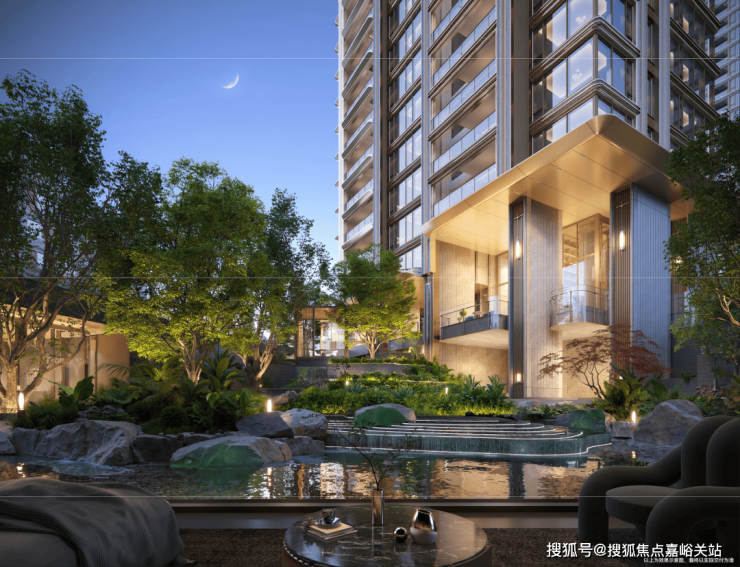 在金茂璞元,归家的四重礼序被完美实践,从公园的松弛感,庭院里的水景,进入山水画门廊,最终到达琉璃光庭。