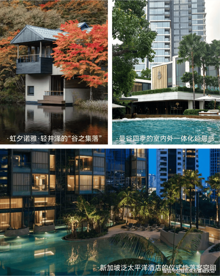 虹夕诺雅·轻井泽的“谷之集落”、新加坡泛太平洋酒店的仪式性落客空间、曼谷四季的室内外一体化延展感,都能在金茂璞元的景观体系中寻到踪迹。