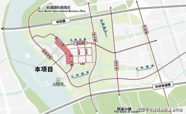 项目位于浦东新区三林镇,东至皓川南路,南至浩昌路,西至皓明路,北至涓清路,紧临湾区水岸、轨交站点等标志性节点。