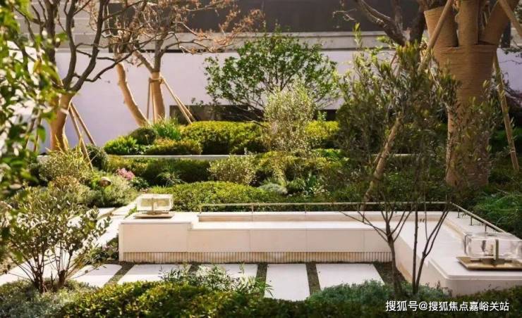 芳香疗愈花园:棋盘格布局的休憩空间以特选香樟为核心,搭配乌桕与多样芳香植物,从湘西深山移植的独特香橼,树形丰满,珍贵性不言而喻。