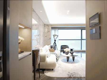 建筑外立面采用现代简约光幕美学,以大面宽玻璃、高档真石漆与精致铝板线条组合,打造出简洁、大气、极具质感的公建化立面。超高窗墙比设计,不仅让建筑外观轻盈通透、历久弥新,更最大化地引入自然光线与室外园景,实现户户观景的 IMAX 级视觉体验。
