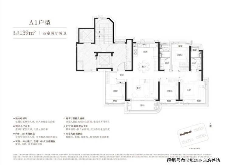 建面约139㎡四房户型,更是形成"阳光平权"的居住体验。