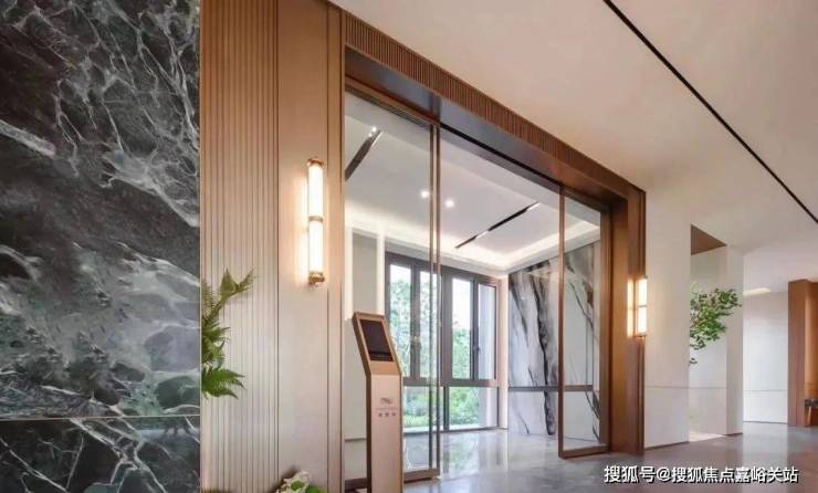 第一进:星级酒店的入户门头搭配入户水景,让入户更具仪式感、同时通过院内布景的遮挡,让小区内部景观增添一抹神秘感;