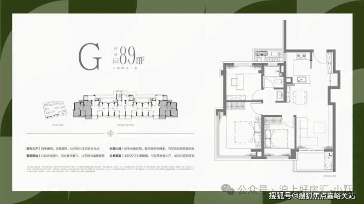 建面约89m²三房两厅一卫户型,LDKB一体化设计,南向三开间布局,全明空间设计。让四季流转于生活之中,用自然营造生活的惬意。