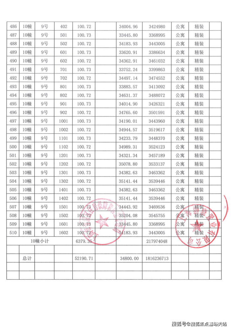 一房一价表