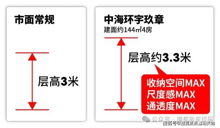 要知道,同级新房的层高大多在3-3.1米,环宇玖章144平户型足足比它们高出20-30厘米。 层高不同于装修,属于后期无法改动的硬性优势 ,意味它能带来永久性的采光、通风升级,更能为立体收纳创造充足空间。