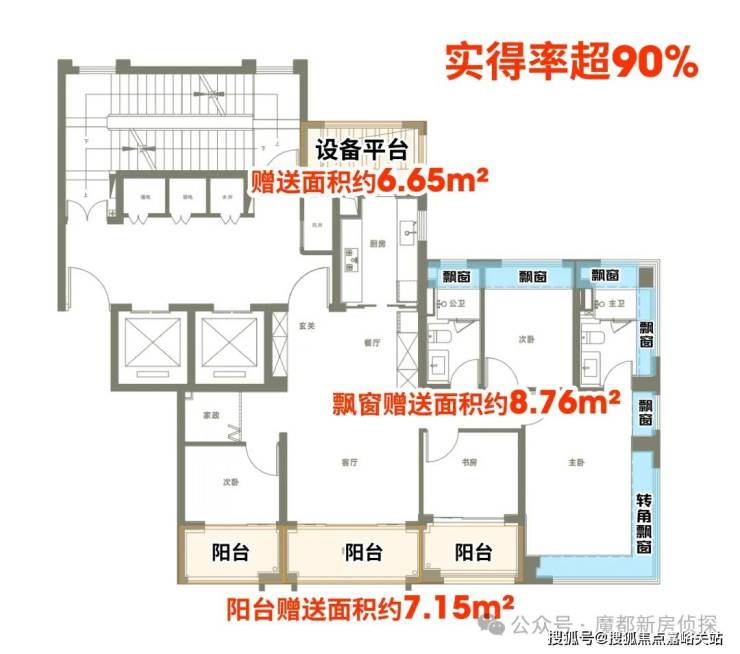 第三大亮点,三阳台+罕见设备平台,实得率拉满!