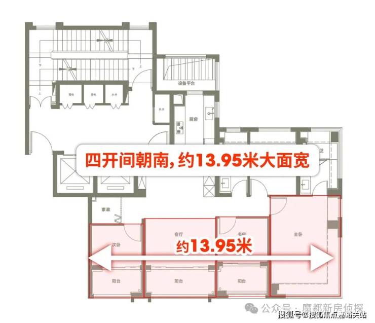 第二大亮点,是同级无敌的约13.95米南向大面宽!