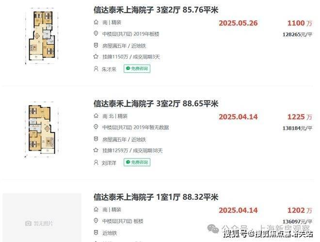 板块二手房方面,建发项目隔壁的上海院子,洋房最新成交价在12-14万之间。
