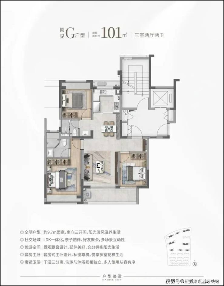 特别是这个 E户型,建面仅约90㎡,对于想住叠加但预算有限的购房者来说,面宽约6.45米,上下动静分离带,是个不错的选择!