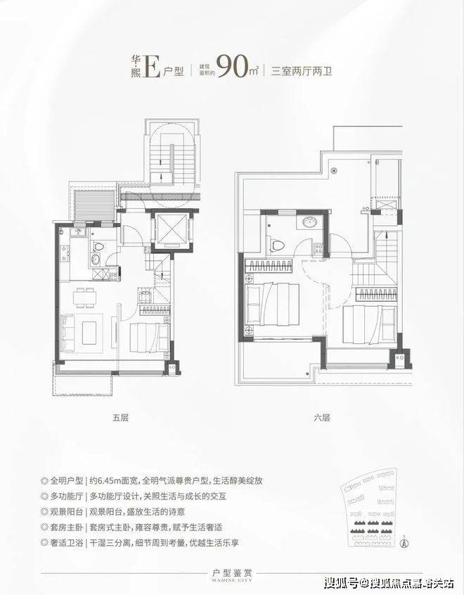 华发海上都荟售楼处预约电话:400-8824-198华发还有目前松江比较稀缺的叠加房源,分为六层叠加和四层叠加。主力户型建面约90-133㎡,特别是这个E户型,建面仅约90㎡,对于想住叠加但预算有限的购房者来说,面宽约6.45米,上下动静分离带,是个不错的选择!华发海上都荟售楼处预约电话:400-8824-198