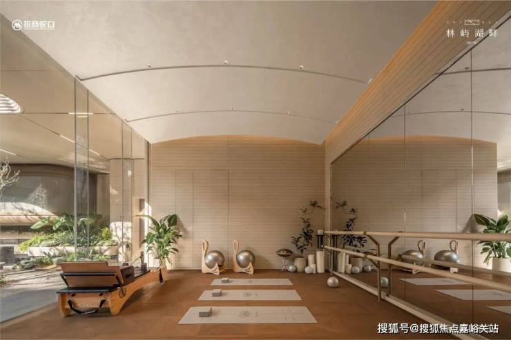 其次,整个会所对标星级酒店艺术品位,设计了 私宴厅、瑜伽室、棋牌室、区域首创国标壁球馆、飞瀑园景健身房、嵌入式景观书吧 等空间。