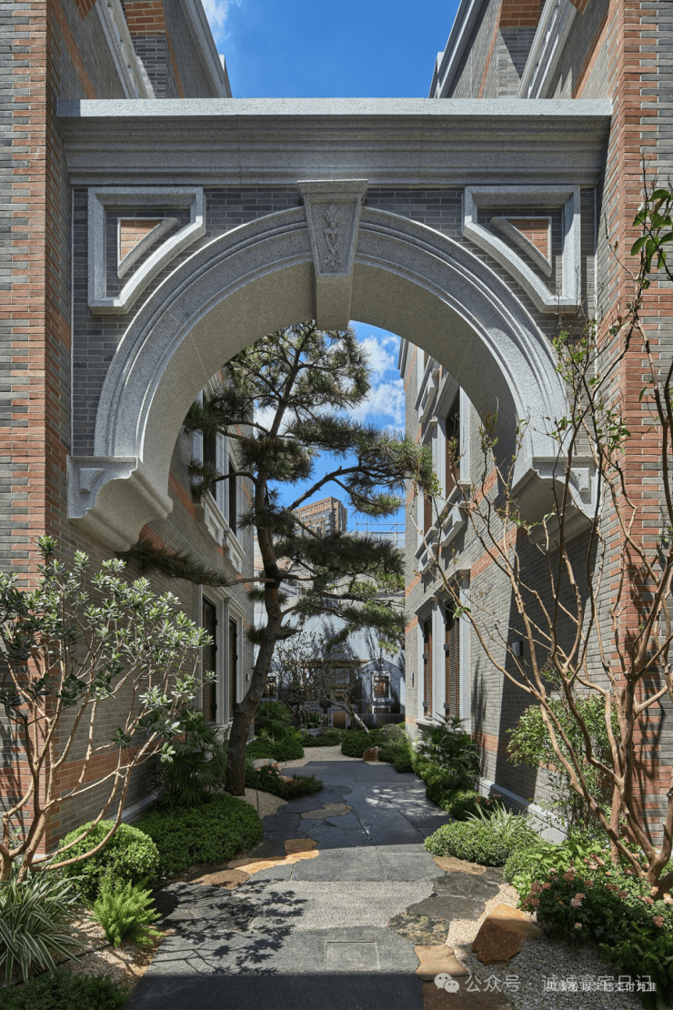 据悉,为重现百年前老建筑的韵味,保利·永兴里设计团队深入考究历史建筑原砖尺寸,重新开模定制外立面砖,采用大面灰砖+红砖腰线的经典排布手法,延续传统建筑的视觉特征。墙面选用深灰、中灰、浅灰三种灰度面砖,通过1:7:2的最优比例拼接,搭配6色砖的层次组合,营造出丰富细腻的立面效果。采用平砖顺砌错缝法,经过上百次系统调试与现场预排,最终由工匠手工微调后上墙砌筑,确保每一块砖的排布都精准还原历史建筑的质感与神韵。