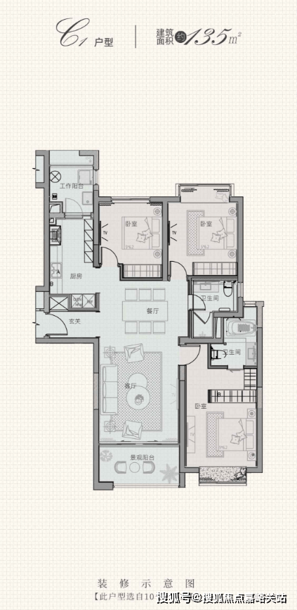 【135平】3室2厅2卫、总价约1580-1600万
