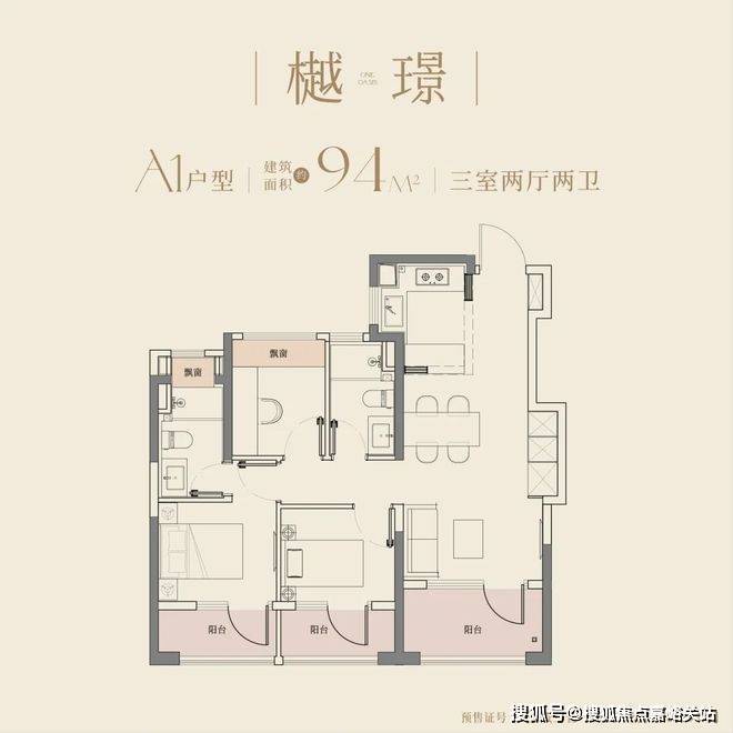 94㎡三房两卫:三阳台 + 全景飘窗,最高可拓展约 19㎡