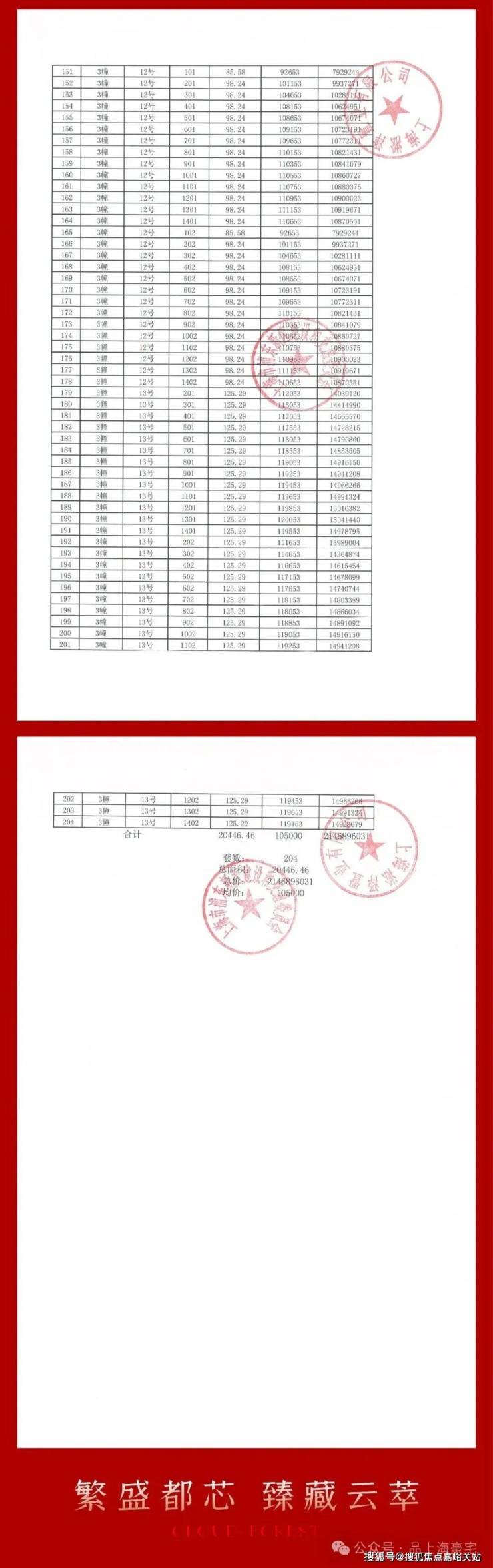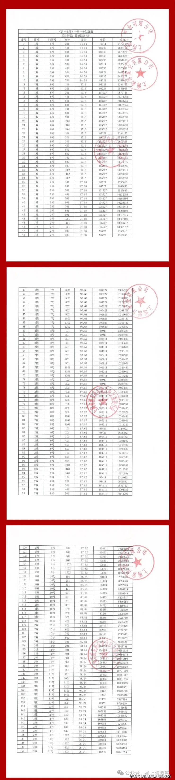 一房一价表