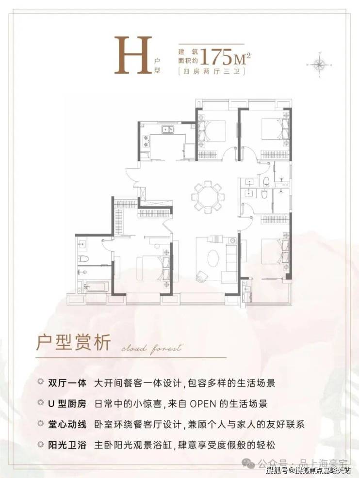 建面约175㎡4房3卫,几乎是上海改善的终点户型。四开间朝南,采光、视野以及通风都极为优秀。主卧超豪华套房,带步入式衣帽间、带可配备浴缸的超豪华卫浴,舒适度惊人。