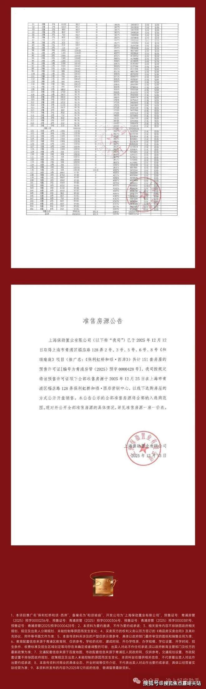 保利虹桥和颂三期一房一价表▼