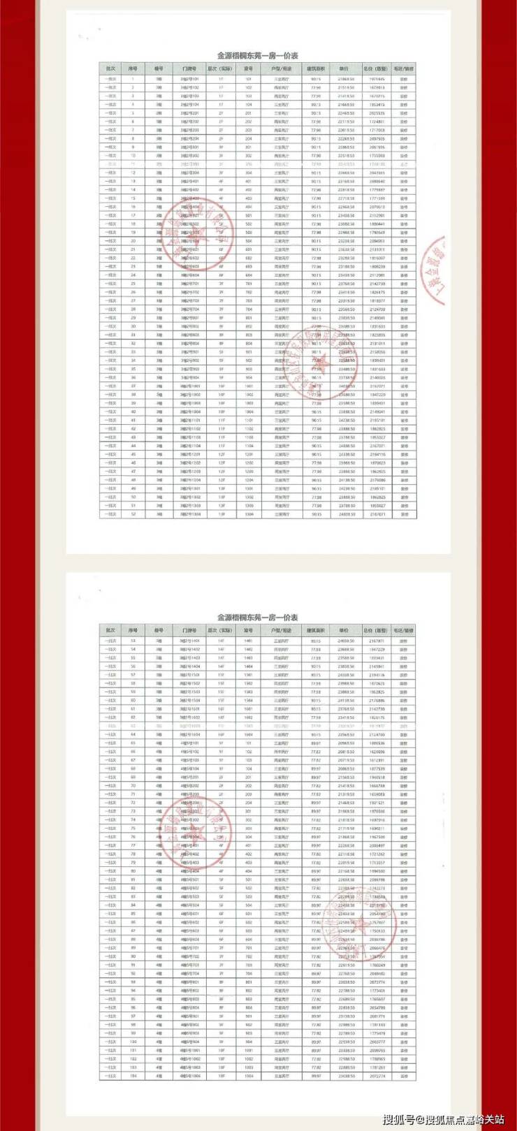 项目一房一价表