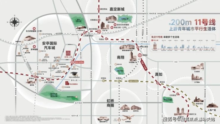 除此之外,上海 2035 规划中的宝嘉线、嘉青松线即将启动,嘉安高速延展嘉定向东,与宝山互通,以安亭为枢纽核心,嘉定再次站在了时代发展的风口之上。