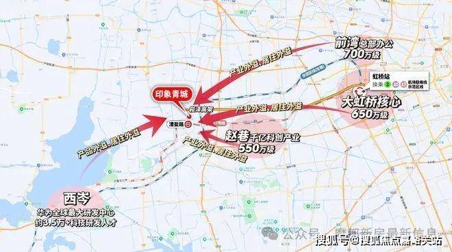 但这还不是全部,17号线+示范区线左手长三角一体化、华为,右手前湾、大虹桥总部商办,并通过虹桥枢纽,串联2号线及正在试运营的机场联络线,把市中心、徐汇、闵行、张江等高能板块都纳入印象青城的通勤版图。