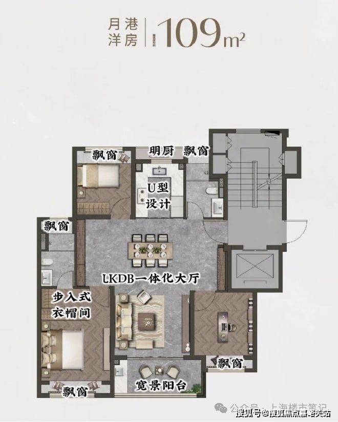建面约109㎡墅区洋房:一梯两户、三开间朝南的“飞机户型”,做到了5个飘窗+1个阳台的极致拓展,尺度感和舒适度远超同价位竞品。国贸海上原墅售楼处电话:400-8894-638(户型详解专线)