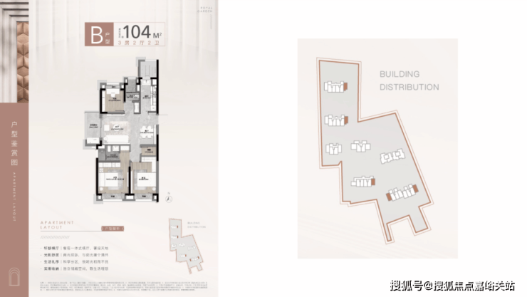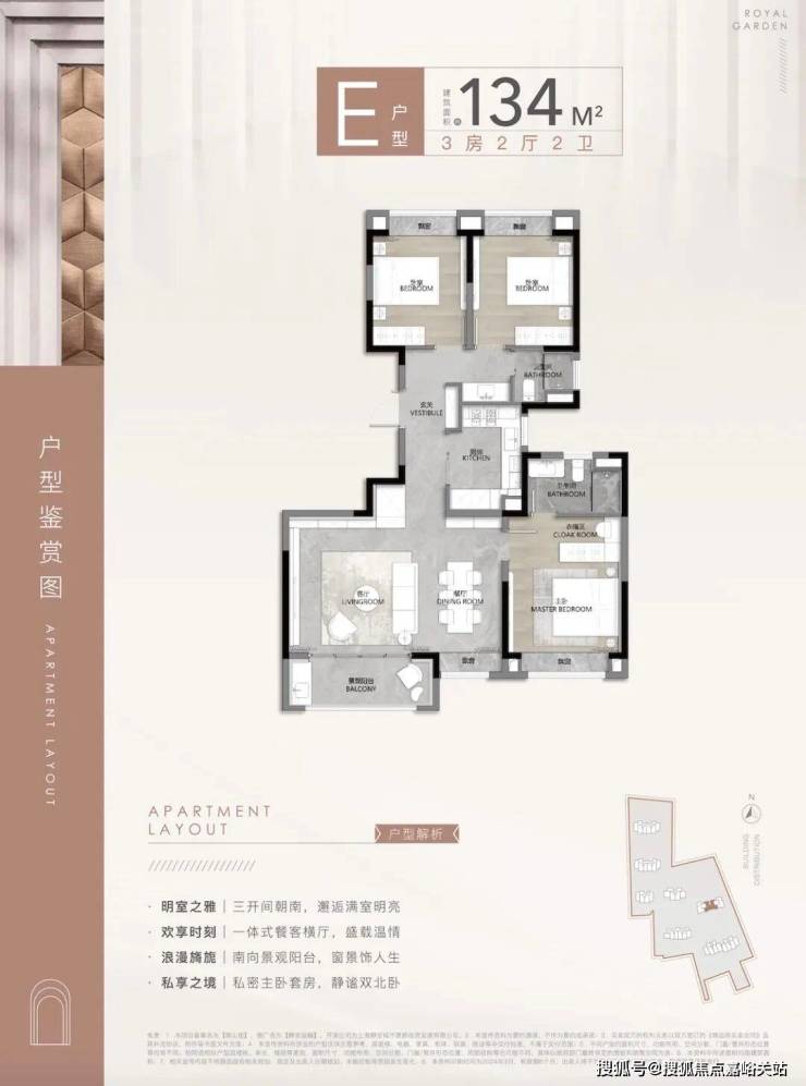 104㎡3户型特点:该户型多为楼栋的东边套,是一个观景户型。客厅连接270°阳台,视野出众。双卧朝南,阳光满溢。从次卫布局看,如果家庭人口较少,该户型还能做成双套卧。