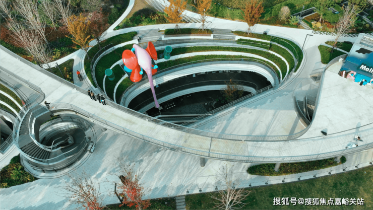 户外定制化主题儿童区+架空层泛会所构成双儿童系统, 以 “秘境童话专列” 的火车主题串联儿童活动空间,兼顾全年龄儿童不同游玩体验。