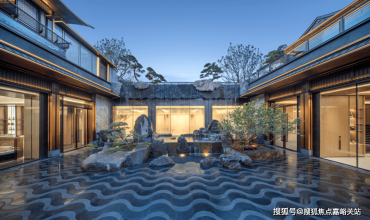 社区设置 近1300㎡水系 及 约7米高差叠石瀑布景观 ,将宋代叠山理水的造园手法融入当代社区营造;在选材上,种植 百年海棠、百l年油橄榄、百年金桂等8大名贵树木 ,选用 马达加斯加蓝翡翠、西班牙艾伦蓝等4大名贵奢石 ,以高品质标准,匹配高阶人群身份和品味。
