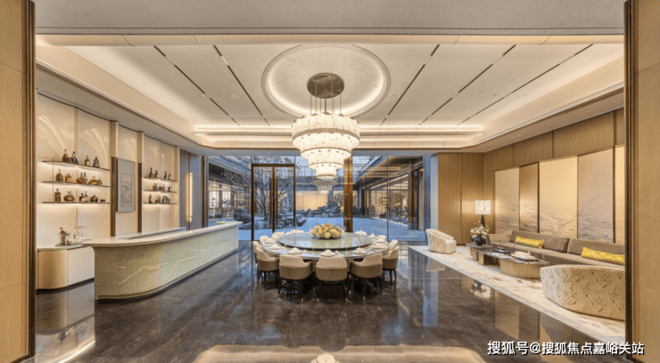 最大约7.5米南向餐客厅 ,视野开阔,可赏宽幕园林; 约20~33㎡一体化餐客厅面积 ,形成宽奢的一体化家庭聚厅,亦从容承载圈层社交与亲子互动。
