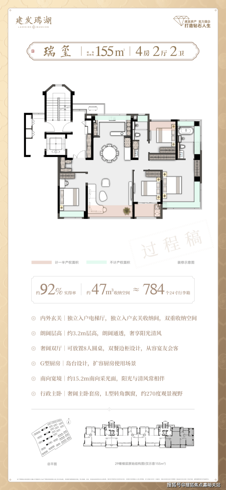 建发瑞湖建筑面积约99-155㎡墅级洋房,通过五大超配革新,将墅居体验落地于洋房产品中。