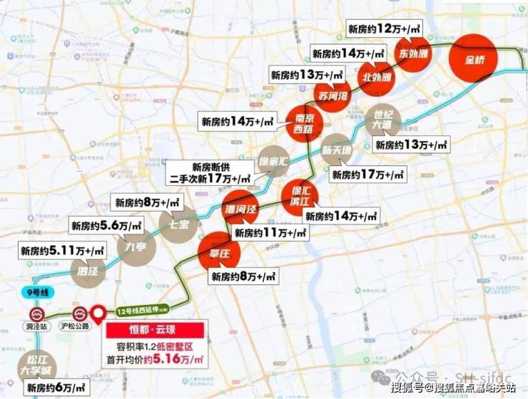 从全市格局来看,12号线可谓是上海的黄金线路,漕河泾、徐汇滨江、南京路、苏河湾、北外滩、东外滩均是上海寸土寸金的CBD,价格早已超过10万大关。而与项目相隔4站的莘庄(七莘路站)目前已经超过8万/㎡, 相比之下容积率1.2的恒都·云璟完全能成为12号线沿线高精尖人群的改善置业目的地!聚焦西南,你会发现恒都·云璟是真的超值。