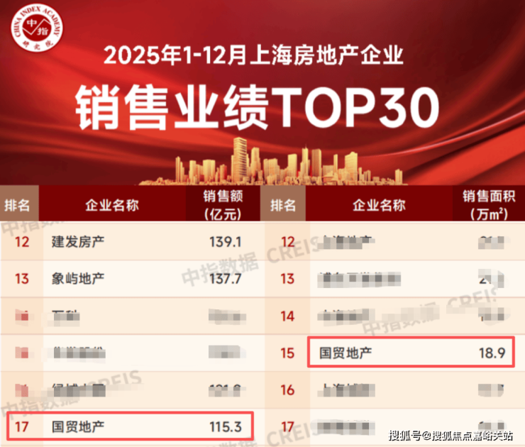 部分老玩家离场之后,比如曾经的碧桂园、融创、旭辉、恒大等,来自于福建的“三剑客”同时上榜,国贸地产以115.3亿销售额排名第17位。