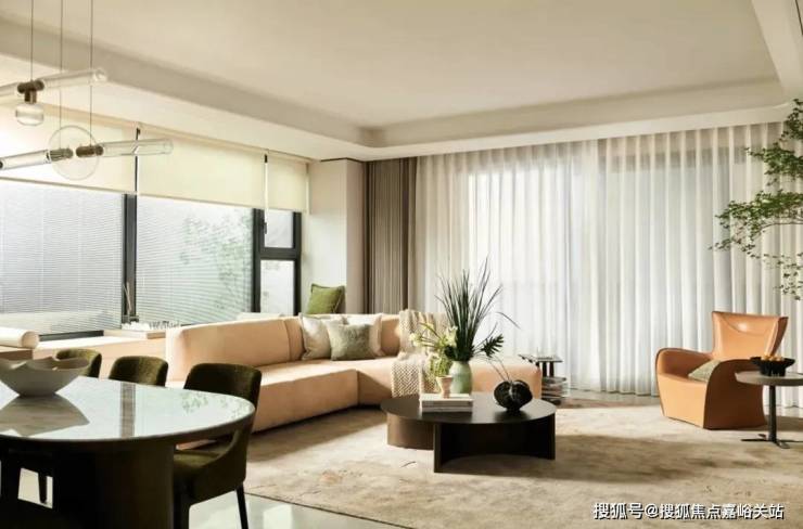 比如,缦云上海的主力层高为3.3米,比市面上的高端住宅高出20-40公分 ,再配上 客厅吊顶采用圆弧设计, 让整体空间更圆润更温和,立体空间感更强,视觉上也更宽敞通透。