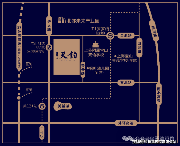 项目位于沪太路与老罗北路交汇处,交通超便捷。近邻轨交 7 号线,还有社区专属巴士,轻松畅达地铁站。S7 沪崇高速已通车,快速通往市区 。周边教育资源丰富,公办宝山区枫叶幼儿园、上海金瑞学校环绕,还对口上海外国语大学附属宝山双语学校 。商业配套同样出色,自带近 2 万平邻里商业(建设中),泳池、健身房、四点半学堂都有 。罗店乐源・慢生活文化村、上坤上街购物中心、龙湖宝山天街等商圈,抬脚即达 。更能共享金桥北郊未来产业园约 1.6 万平高品质配套,星巴克、麦当劳已开业 。