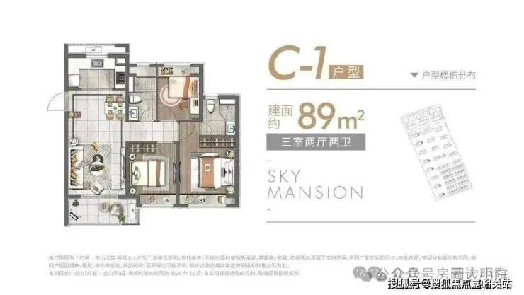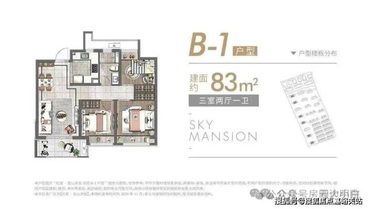 除了建面约89㎡的洋房, 建面约83~89㎡高层户型也各有所长,均是三房设计,无论是从结构布局,还是空间利用皆相得益彰,承载一家人的美好生活。 高层户型如下: