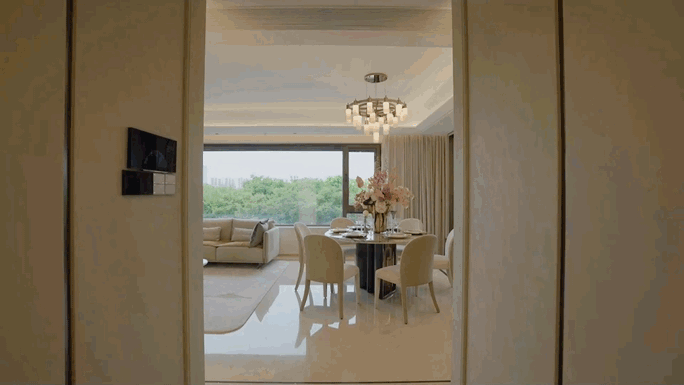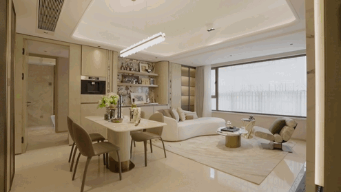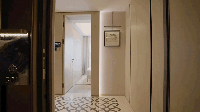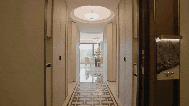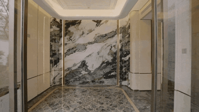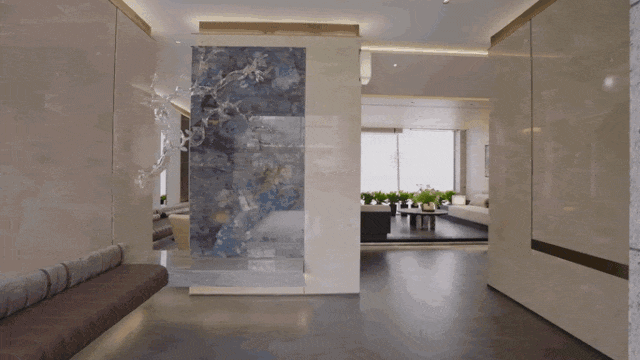 全域奢石: 从景观区的拼花地面,再到会所空间、大堂景墙、电梯厅、室内玄关,天然奢石贯穿全域,不仅让每一处空间都有“触手可及”的质感,更赋予产品“历久弥新”的恒久价值;