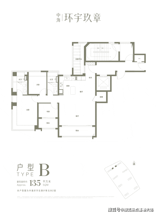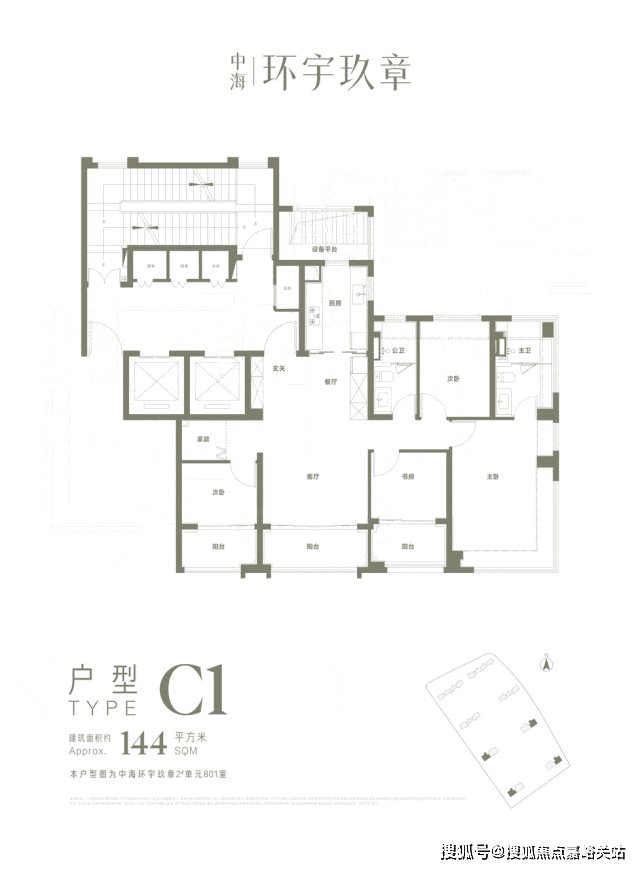 中海环宇玖章的全系产品为,建面约123-135-144-176㎡左右户型;